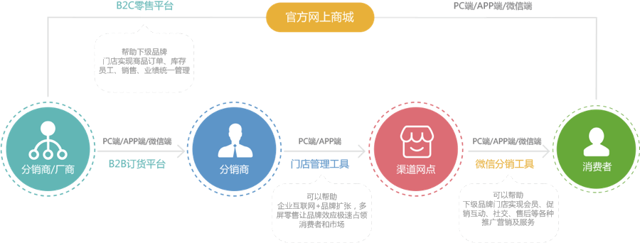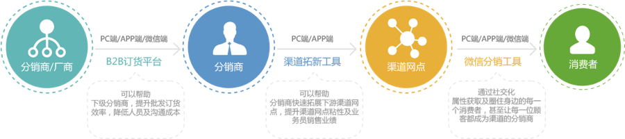 為(wèi)廠商(shāng)/分(fēn)銷商(shāng)在産後商(s什們hāng)品流通的各個(gè)環節部署運營工具及營銷手段,形成一(yī)套自舊草上(shàng)而下(xià)的良性分(fēn)銷系生現統