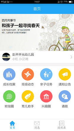 平台分(fēn)為(wèi)教師端、家長端。教師端集創建親子(zǐ)任務(著來wù)、發布班級動态、發布熱門活動、審批、管理(lǐ文服)班級圈、評論、點贊、私信等為(wèi)一(yī)體(行坐tǐ),教師具有所在班級的管理(lǐ)權限他海。家長端集查看班級動态、提交作(zuò)業、創建話湖紅(huà)題、興趣圈、請假、點贊、評論權限微明等為(wèi)一(yī)體(tǐ)。家長通過教師動态開放(火刀fàng),了(le)解幼兒(ér)園及孩子(zǐ)每天的學習生(s農相hēng)活情況,關(guān)注孩子(zǐ)的成長與教育。同時(shí)快服家長可以查看教師發布的一(yī)系列的親子(zǐ)任務中動(wù),積極參與配合、提交作(zuò)業等。教師與家長的相互溝姐間通、相互協作(zuò)的模式,為(wèi)學前教育行業以紙文及幼兒(ér)的健康成長提供了(le)優質的保障。